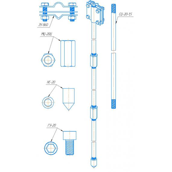 909013 ЗУ-Ц-20-4,5 Комплект заземления 4.5м - стержни Ø20мм.