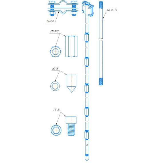 - СЦ-16-1,5 Стержень оцинкованный диаметр диам 16 мм,длина 1,5 м - 6 шт
