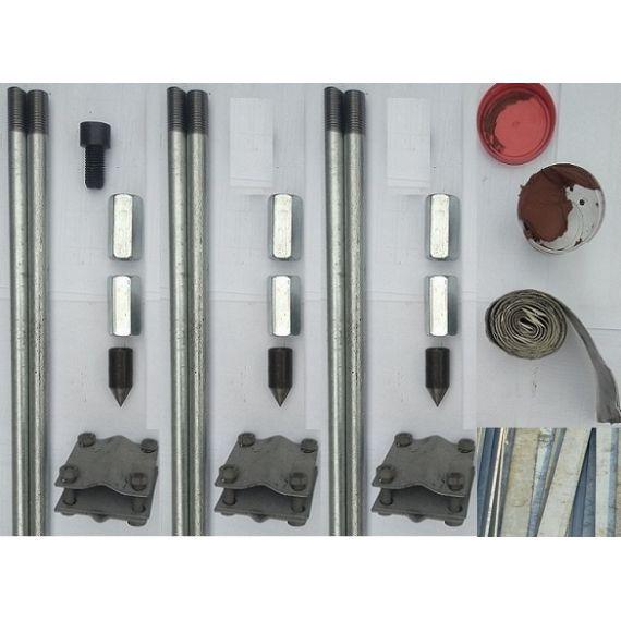 С помощью данного комплекта можно выполнить монтаж классического заземления по "схеме" Треугольник - 3 штыря по 3м, забитые по углам равностороннего треугольника, соединенные между собой полосой 40х4. Данная технология актуальна в местах со скалистым грунтом, т.е. там где глубинный заземлитель не возможно погрузить на большую глубину.